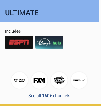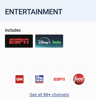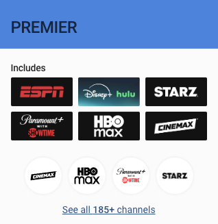 Entertainment $89.99, Choice $107.98, Ultimate $132.98, Premier $172.98