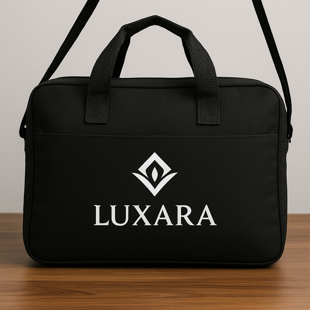 Carry your essentials in style with the official Luxara Messenger Bag. Built for both function and fashion, this sleek black bag is perfect for business, travel, or everyday use.